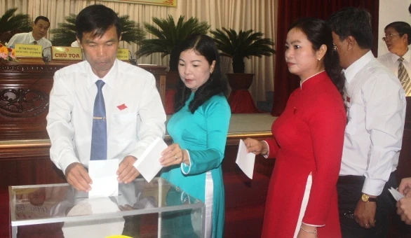 Đến 8 giờ 20 phút, các đại biểu bắt đầu tiến hành bỏ phiếu bầu chức danh Chủ tịch HĐND tỉnh với ứng viên duy nhất là ông Huỳnh Thanh Tạo – Phó Bí thư thường trực Tỉnh ủy, nguyên Chủ tịch HĐND tỉnh khóa VIII.