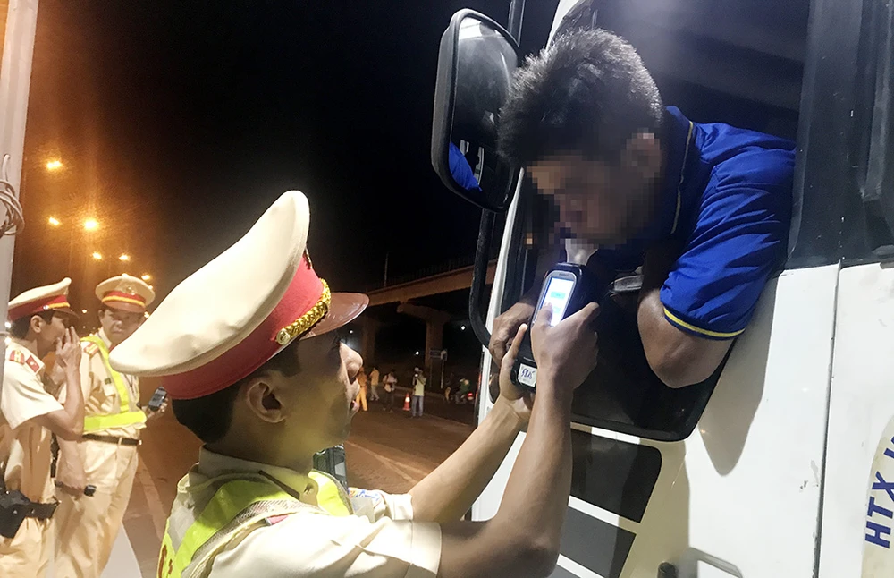 Cũng khuya 29-1, qua kiểm tra hàng chục xe ô tô, xe tải đi qua khu vực này, CSGT phát hiện hai trường hợp có nồng độ cồn nhưng vẫn lái xe.
