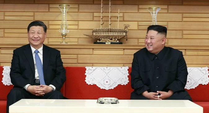 Hai lãnh đạo Trung-Triều trong một cuộc gặp. Ảnh: KCNA