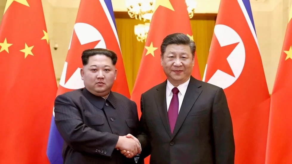 Lãnh đạo Triều Tiên Kim Jong-un (trái) và Chủ tịch Trung Quốc Tập Cận Bình. Ảnh: AP