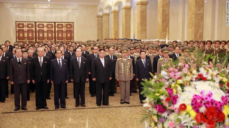 Bức ảnh được chụp vào ngày 15-4-2017, khi nhà lãnh đạo Triều Tiên Kim Jong-un thăm Cung điện Mặt trời Kumsusan ở Bình Nhưỡng nhân kỷ niệm 105 ngày sinh của cố Chủ tịch Kim Il Sung. Ảnh: CNN