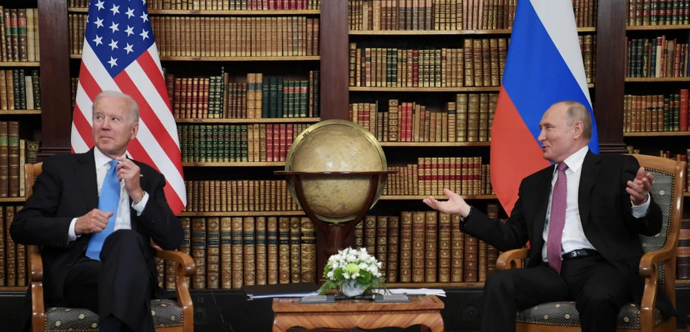 Tổng thống Mỹ Joe Biden (trái) và người đồng cấp Nga Vladimir Putin tại hội nghị thượng đỉnh ở Geneva, Thụy Sĩ hồi tháng 6. Ảnh: REUTERS