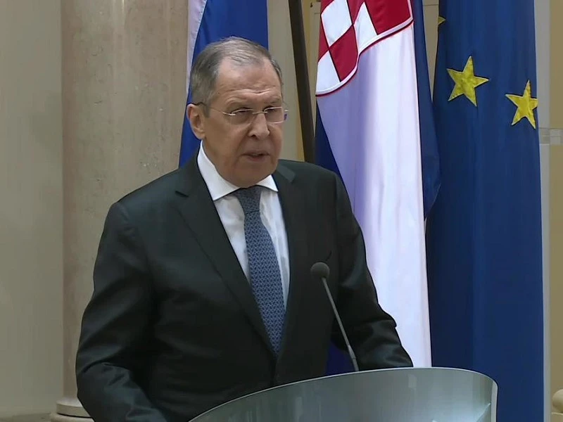 Ngoại trưởng Nga Sergey Lavrov trong cuộc họp báo tại Croatia hôm 16-12. Ảnh: RUPTLY