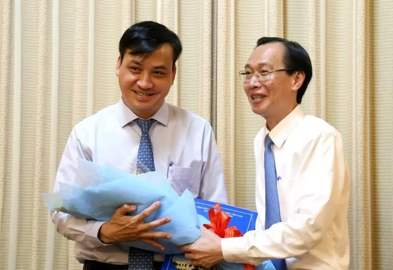 Phó Chủ tịch Thường trực UBND TP.HCM Lê Thanh Liêm trao quyết định cho ông Lê Hòa Bình.