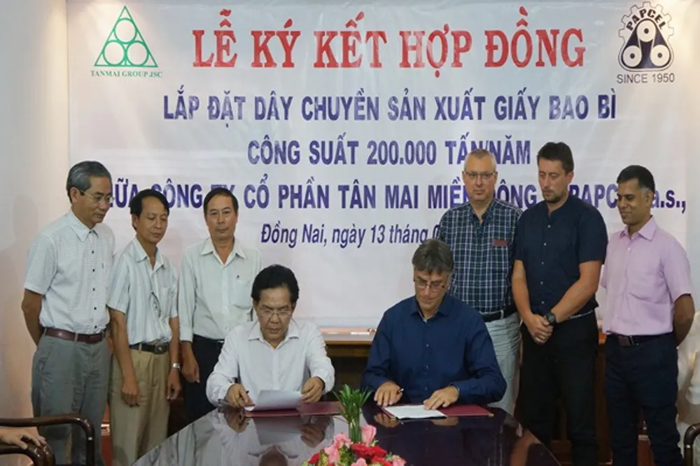 Tập đoàn giấy Tân Mai ký kết với Công ty Papcel (Cộng hòa Czech) về việc lắp đặt dây chuyền máy giấy và chuyển giao công nghệ vận hành tại dự án Nhà máy giấy Tân Mai Miền Đông với tổng giá trị 28 triệu euro (tương đương hơn 700 tỉ đồng).