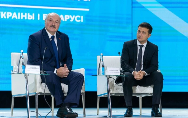 Tổng thống Belarus Alexander Lukashenko (trái) và Tổng thống Volodymyr Zelensky trong một cuộc gặp hồi năm 2019. Ảnh: KYIV POST