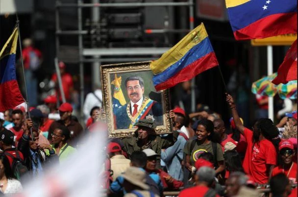Những người ủng hộ ông Maduro trong trang phục màu đỏ tại buổi lễ kỷ niệm chiến thắng trong cuộc bầu cử lại 2018. Ảnh: REUTERS