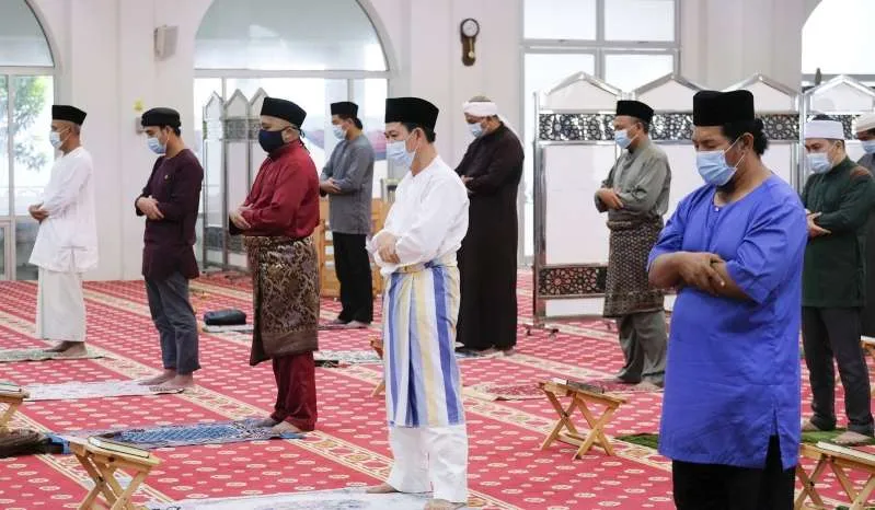Ở Malaysia, người Hồi giáo đến những nơi thờ tụng vẫn phải duy trì giãn cách xã hội phòng COVID-10. Ảnh: SOUTH CHINA MORNING POST