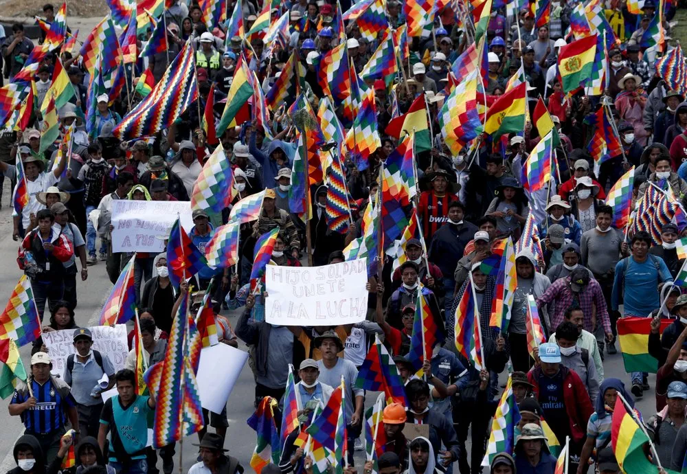 Những người biểu tình, đa phần là người trồng coca, tiếp tục xuống đường ủng hộ ông Morales ngày 18-11. Ảnh: AP