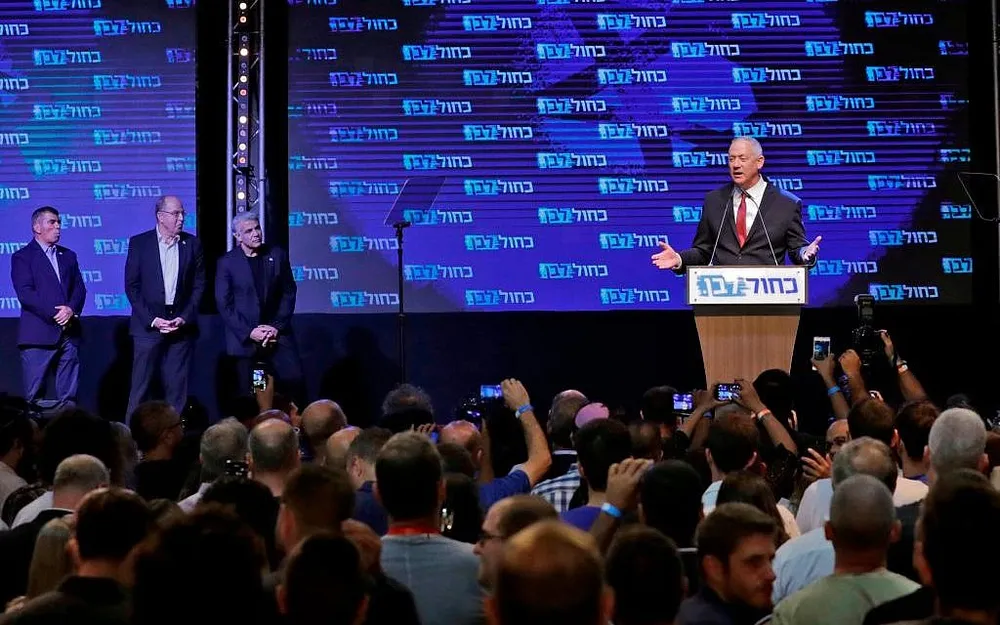 Lãnh đạo Đảng Xanh-Trắng Benny Gantz phát biểu trước những người ủng hộ tại Tel Aviv hôm 18-9. Ảnh: Times of Israel