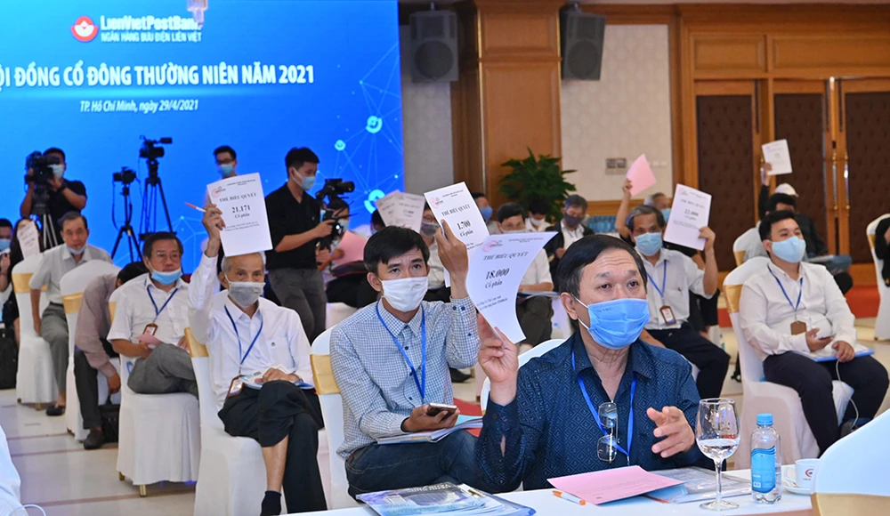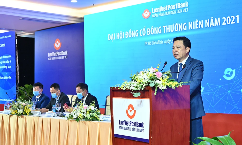 Với sự đồng thuận cao của các cổ đông, Đại hội đồng cổ đông (ĐHĐCĐ) thường niên LienVietPostBank 2021 (mã cổ phiếu LPB) đã thông qua nhiều nội dung quan trọng, như: kế hoạch kinh doanh năm 2021 và lợi nhuận trước thuế đạt 3.200 tỷ đồng, tăng 32% so với năm 2020; phương án tăng vốn điều lệ lên 15.700 tỷ đồng; chia cổ tức năm 2020 với tỷ lệ 12% bằng cổ phiếu; bầu bổ sung ông Nguyễn Đức Thụy vào HĐQT…