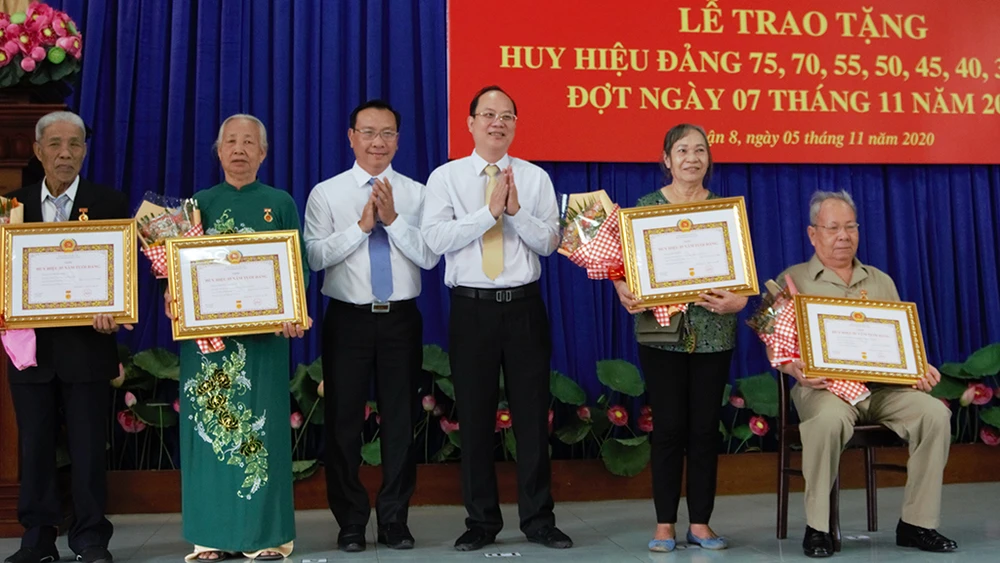 Sáng 5-11, Quận ủy quận 8, TP.HCM đã tổ chức Lễ trao tặng huy hiệu Đảng cho 36 đảng viên thuộc các đảng bộ, chi bộ cơ sở trực thuộc quận ủy.