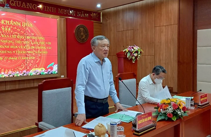 Ông Nguyễn Hòa Bình đề nghị tỉnh Khánh Hòa sớm chỉ đạo điều tra các vụ việc theo yêu cầu của Trung ương, không để chìm xuồng; không để tình trạng chần chừ trong điều tra, xử lý và giải quyết tồn tại mà Trung ương giao.