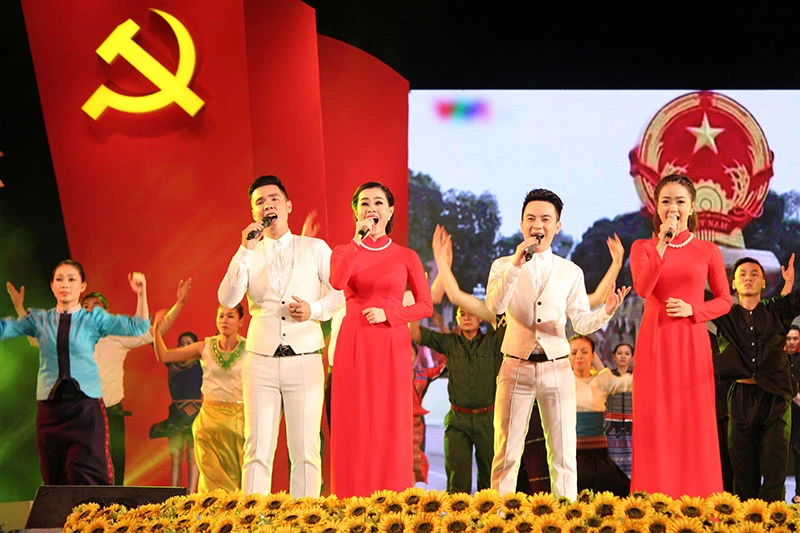 Tiết mục Nguồn sáng dẫn đường do NSƯT Tạ Minh Tâm và nhóm ca Ngày mới biểu diễn. Ảnh: HOÀNG GIANG