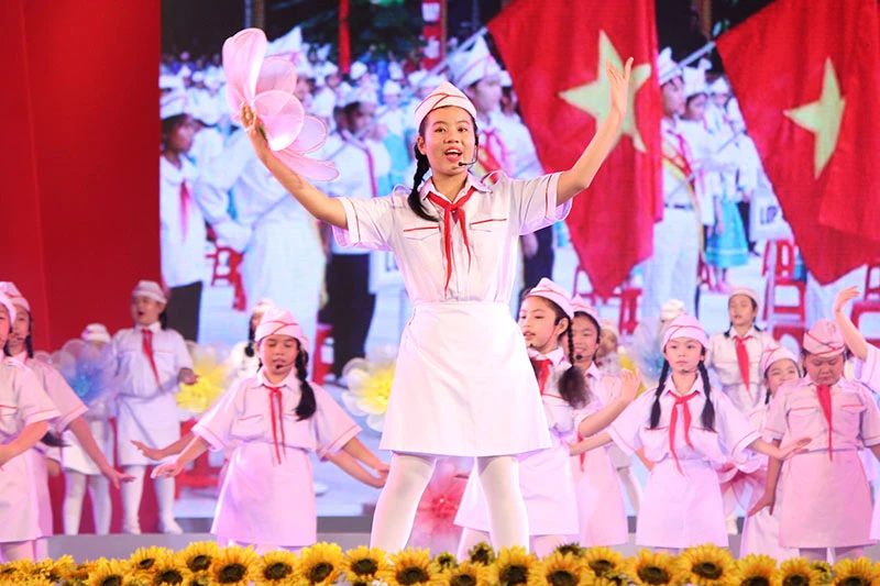 Các em thiếu nhi tham gia biểu diễn trong chương trình. Ảnh: HOÀNG GIANG