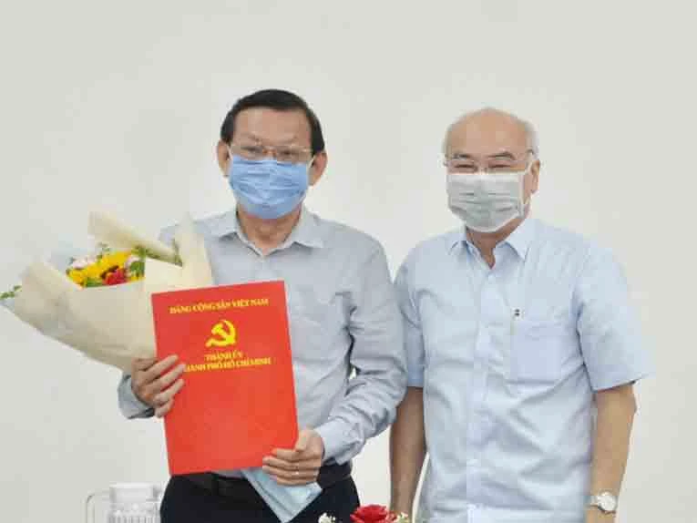Trưởng Ban Tuyên giáo Thành ủy TP.HCM Phan Nguyễn Như Khuê trao quyết định cho ông Nguyễn Tấn Phong. Ảnh: Web Thành ủy TP.HCM