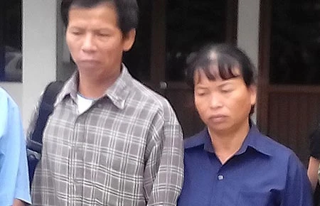 Vợ chồng ông Nguyễn Thanh Chấn sau buổi làm việc với TAND Tối cao. Ảnh: ND