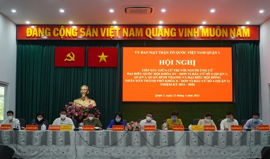Sáng 12-5, Ủy ban MTTQ Việt Nam quận 1 (TP.HCM) đã tổ chức hội nghị tiếp xúc giữa cử tri và người ứng cử đại biểu Quốc hội khóa XV (đơn vị bầu cử số 2) và đại biểu HĐND TP.HCM nhiệm kỳ 2021-2026 (đơn vị bầu cử số 4).