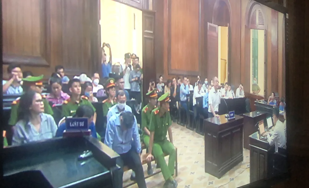 Các bị cáo tại phiên xử. Ảnh: H.Y