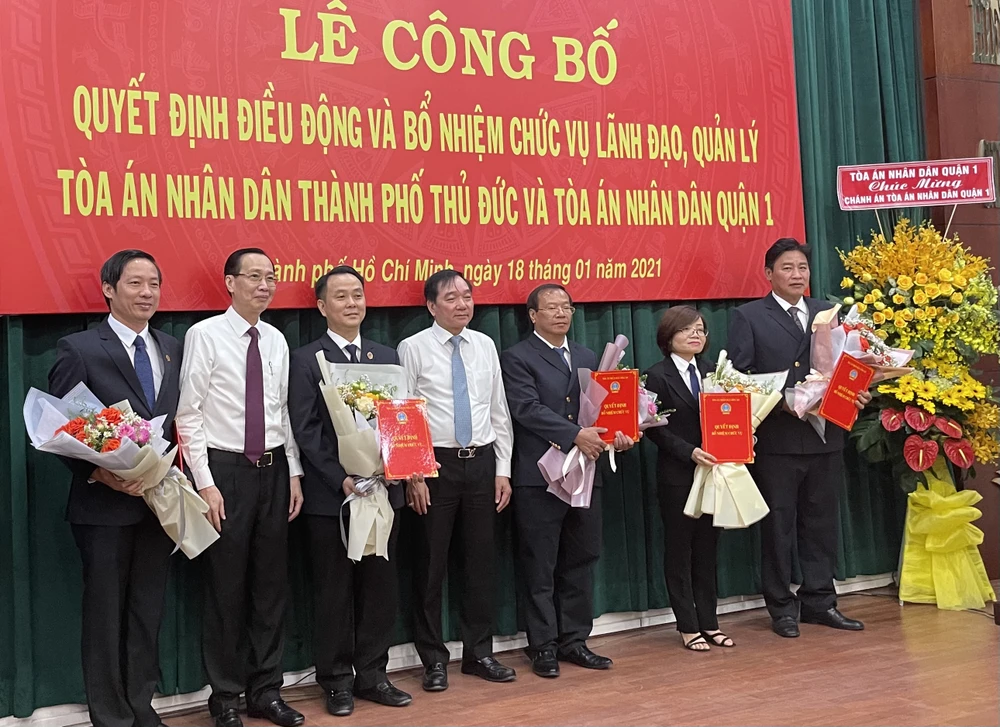 Ngày 18-1, TAND TP.HCM tổ chức lễ công bố quyết định điều động và bổ nhiệm chức vụ lãnh đạo quản lý TAND TP Thủ Đức & TAND quận 1, TP.HCM.