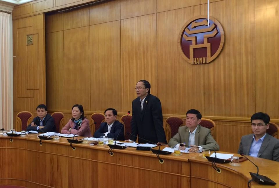 Trưởng ban Pháp chế HĐND TP Hà Nội trả lời báo chí tại cuộc họp báo.