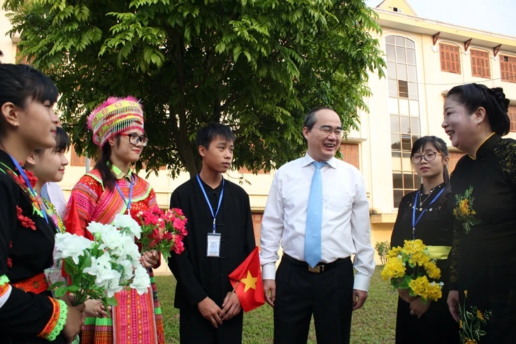 Ngay từ 7 giờ sáng 5-9, Ủy viên Bộ Chính trị Nguyễn Thiện Nhân, Chủ tịch Ủy ban Trung ương MTTQ Việt Nam, đã đến Trường THPT dân tộc nội trú Tuyên Quang. Trường hiện có khoảng 500 HS đang theo học.