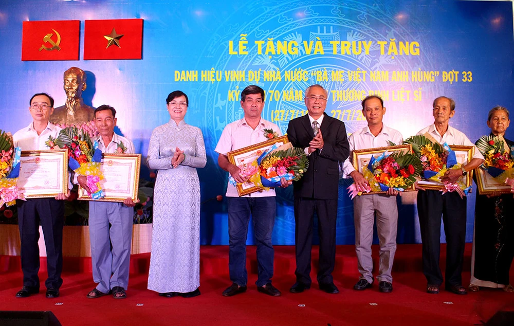 Buổi lễ đã tặng và truy tặng danh hiệu cao quý cho 64 bà mẹ. Ảnh: L. THOA