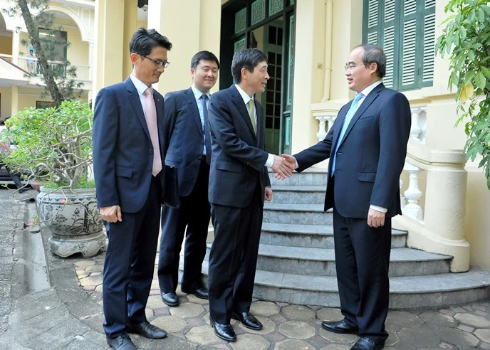 Ủy viên Bộ Chính trị Nguyễn Thiện Nhân tiếp Đại sứ Hàn Quốc ngày 19-7. Ảnh: HOÀNG LONG