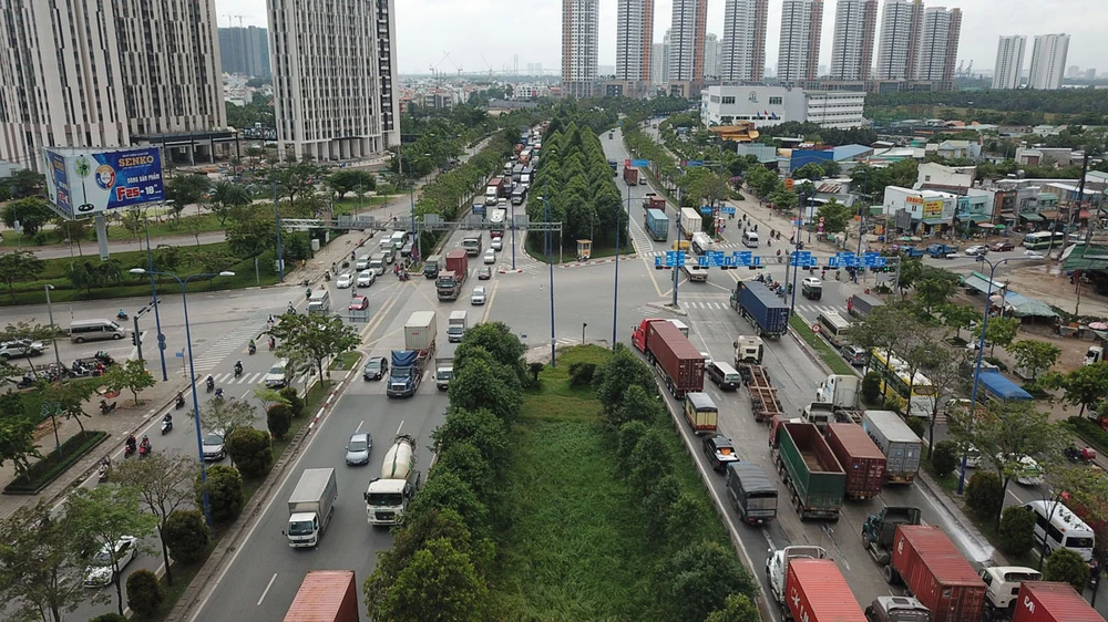 Hệ thống giao thông Đông Nam bộ hiện tại chỉ mới đạt 27% so với quy hoạch. Trong ảnh: Khu vực nút giao An Phú kết nối cao tốc TP.HCM - Long Thành - Dầu Giây (nhìn từ trên cao) luôn quá tải vào các dịp lễ, tết.