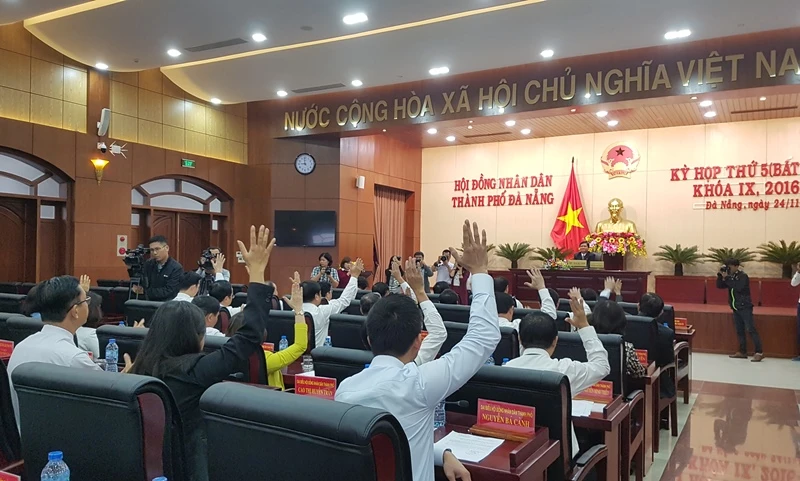 Theo đó, sau khi thảo luận tại tổ, ông Nguyễn Nho Trung (Phó Chủ tịch HĐND TP Đà Nẵng) chủ trì tiếp phần giơ tay biểu quyết.