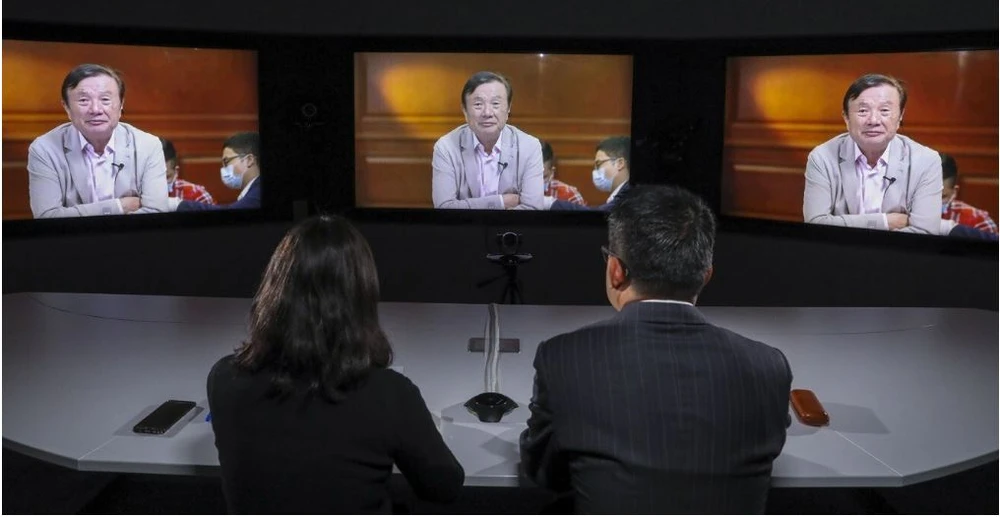 Người sáng lập Huawei - ông Nhậm Chính Phi trả lời phỏng vấn trực tuyến với báo South China Moring Post. Ảnh: SCMP