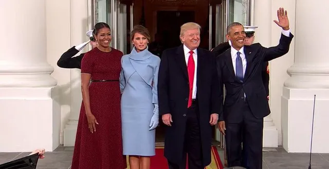 Tổng thống Barack Obama cùng vợ đón tiếp ông Donald Trump tại Nhà Trắng vào đầu năm 2017. Ảnh: REUTERS