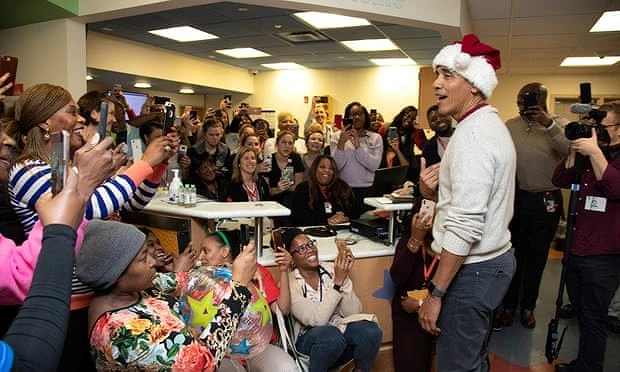 Cựu Tổng thống Mỹ Barack Obama bất ngờ xuất hiện tại Trung tâm Y tế Trẻ em Quốc gia ở Washington hôm 19-12, để tặng quà cho trẻ em. Xuất hiện trong bộ trang phục giản dị, đầu đội nón ông già Noel và vác theo một bao tải quà trên vai, ông đã làm rất nhiều trẻ ngạc nhiên thích thú, The Guardian đưa tin.