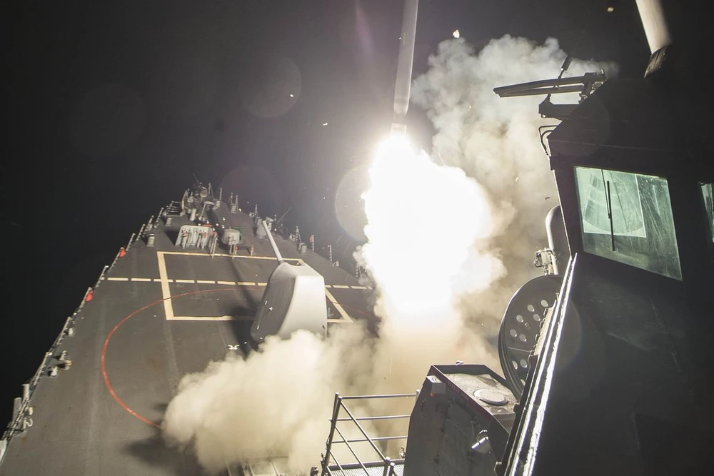 Tổng thống Mỹ Donald Trump hồi tháng 4 đã quyết định tấn công vào một căn cứ quân sự của chính phủ Syria. Ảnh: Bộ Quốc phòng Mỹ