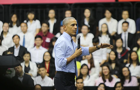 Tổng thống Obama nhấn mạnh: “2/3 số người Việt hiện nay sinh sau năm 1975. Thế hệ này có thể nhìn thế giới với đôi mắt tươi sáng, không có những định kiến từ những thế hệ trước. Điều này giúp Việt Nam phát triển và góp phần định hình thế giới”.