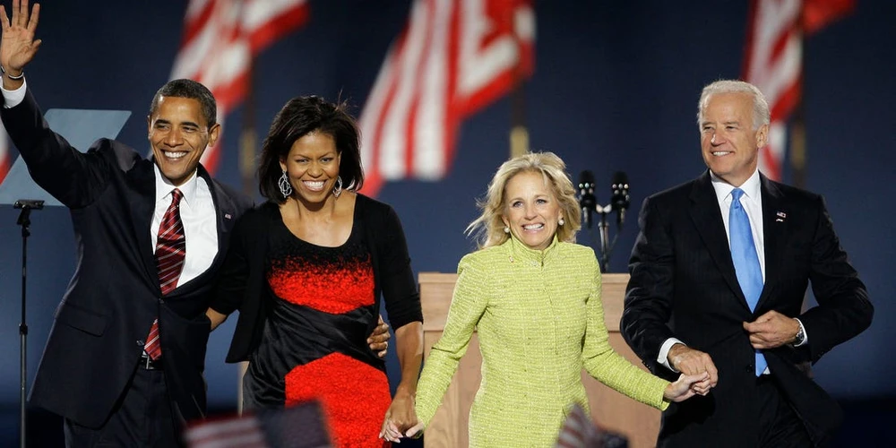 Vợ chồng Tổng thống Barack Obama (trái) và vợ chồng Phó Tổng thống Joe Biden thời còn làm việc chung năm 2018. Ảnh: BUSINESS INSIDER