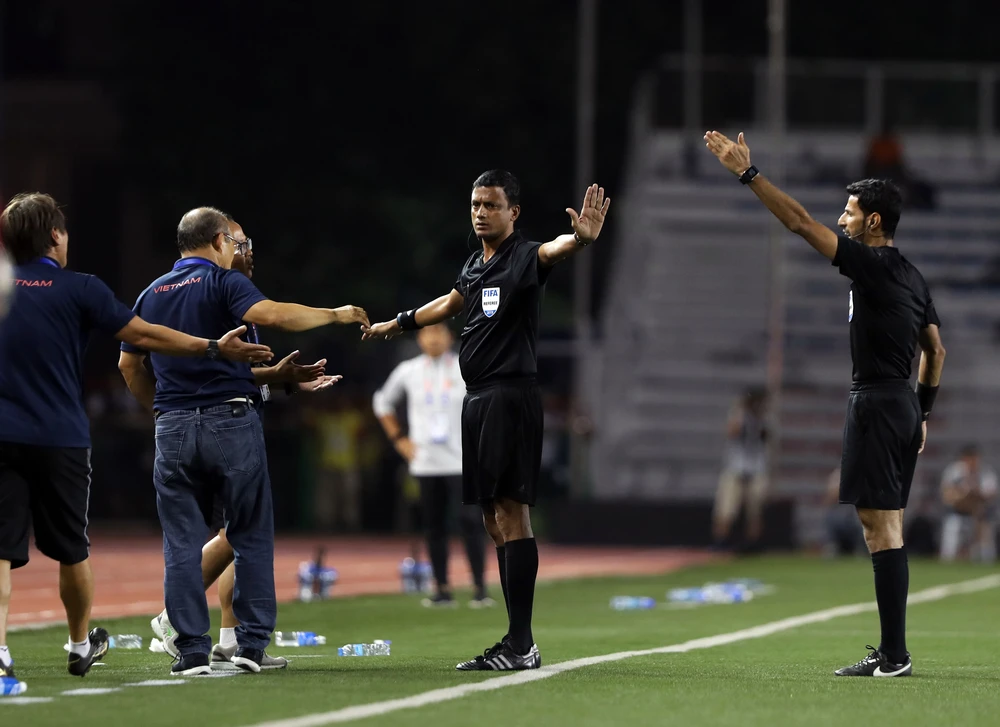 Trọng tài người Kuwait mời ông Park rời khỏi sân. Ảnh: ANH PHƯƠNG