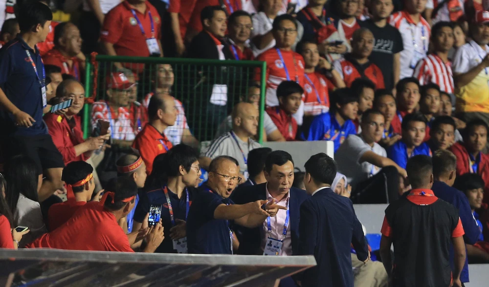 Trước đó, ở trận chung kết SEA Games 30, do lỗi phản ứng trọng tài sau tình huống Trọng Hoàng bị đối thủ Indonesia phạm lỗi, thầy Park đã phải nhận thẻ đỏ lên khán đài theo dõi trận đấu.