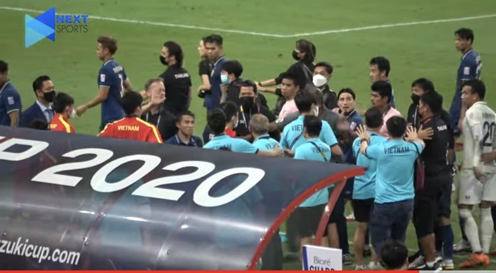 Báo chí Thái Lan miêu tả, sau khi tiếng còi kết thúc trận Thái Lan thắng Việt Nam 2-0 ở bán kết lượt đi AFF Cup vang lên, HLV Park Hang-seo lao theo hậu vệ cánh Theerathon để “hỏi cho ra lẽ” hành động giật chỏ của cầu thủ này và thái độ thi đấu của hậu vệ mang áo số 3 đầy mưu mẹo và tiểu xảo này.