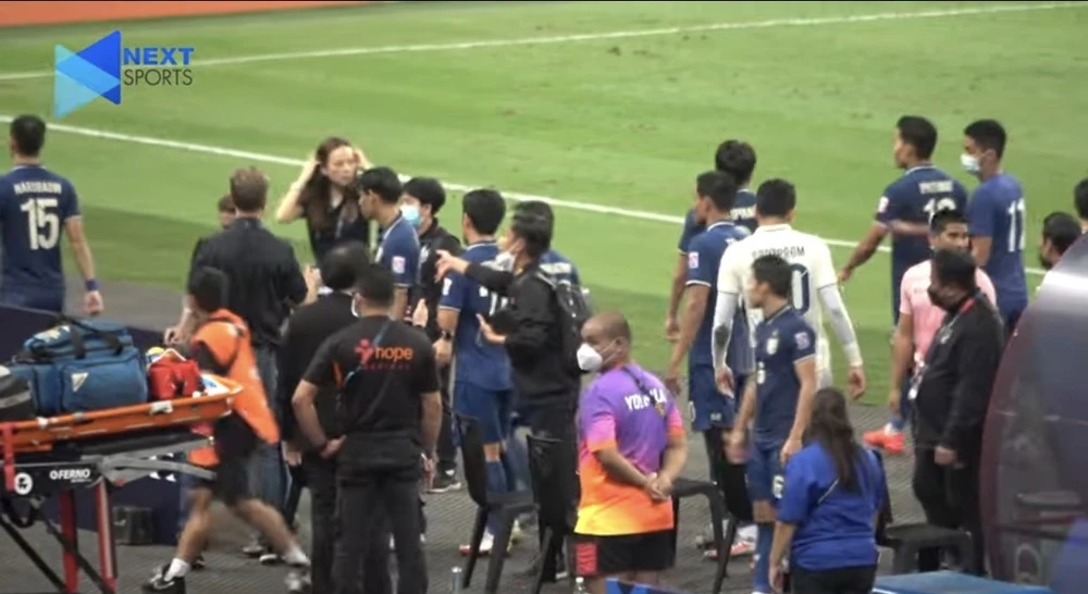 Báo Thái trích từ clip có logo NEXT Media về lộn xộn sau trận. Ảnh: S.S