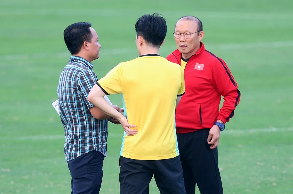 Thầy Park cùng các cộng sự đã tính toán rất kỹ cho ba trận cuối vòng loại thứ hai cúp thế giới với mục tiêu đi tiếp. Ảnh: NGỌC DUNG.