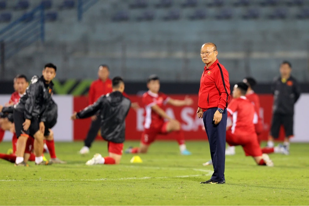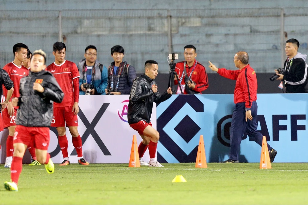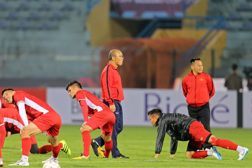 Đội tuyển Việt Nam ở lượt trận cuối bảng A dù chỉ tiếp đội yếu Campuchia đã chắc chắn bị loại nhưng vẫn rất nỗ lực trong các bài tập. HLV Park Hang-seo giấu kín đội hình xuất phát vì muốn cầu thủ nào cũng ở trong tư thế sẵn sàng.