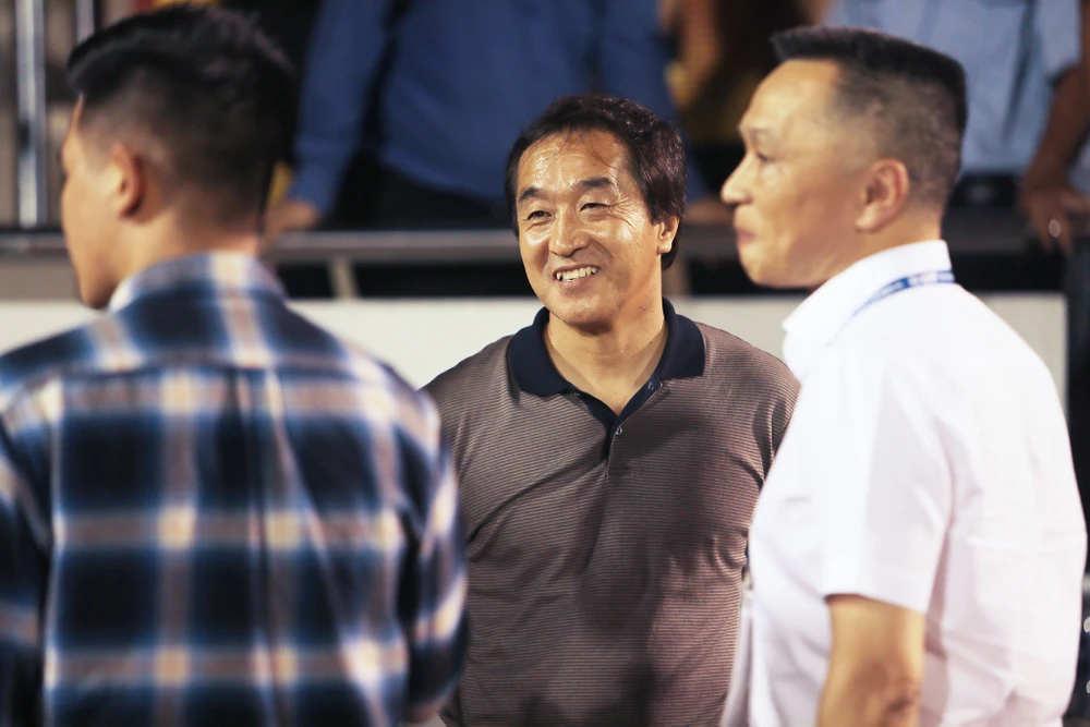 Trợ lý của HLV Park Hang-seo (giữa) cùng Chủ tịch CLB Sài Gòn Nguyễn Giang Đông.