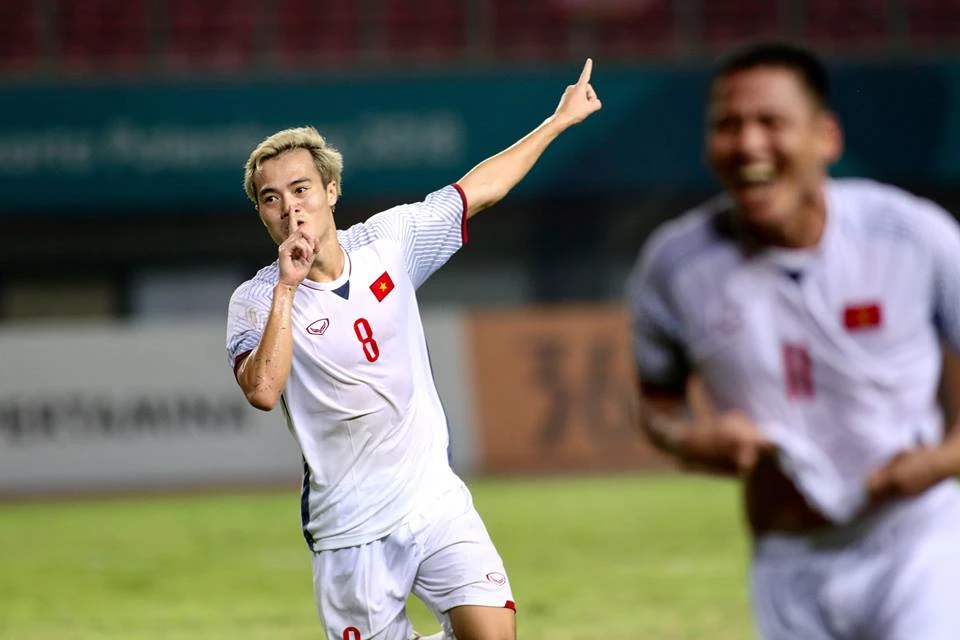 Văn Toàn ghi bàn thắng quý hơn vàng giúp Olympic Việt Nam vào bán kết Asiad 18. Ảnh: HUY PHẠM