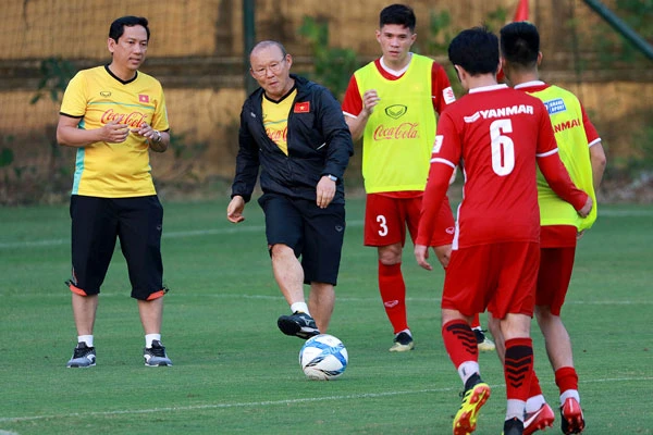 Trong buổi tập luyện ngày 19-10 của đội tuyển, HLV Park Hang-seo tiếp tục thực hiện các bài tập mang tính phục hồi và củng cố nền tảng thể lực, sức mạnh, tốc độ cho các cầu thủ, đồng thời sắp xếp thời lượng hợp lý cho bài rèn đấu pháp, lối chơi.