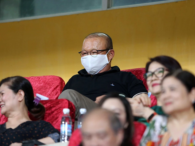 HLV Park Hang-seo thảnh thơi cùng ban huấn luyện chia nhau đến các sân tuyển quân ở giải V-League. Ảnh: NGỌC DUNG