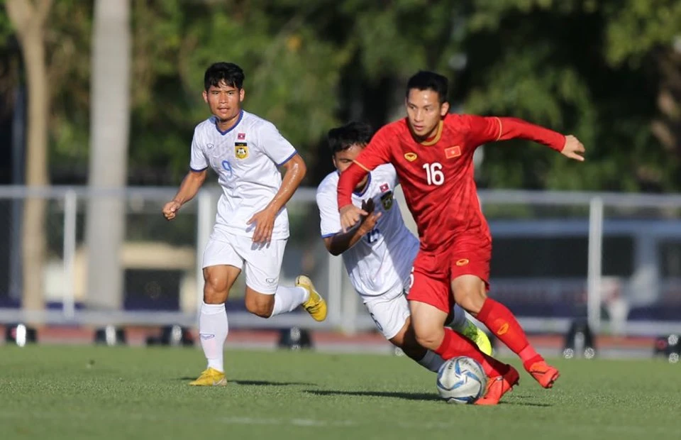 Hùng Dũng tăng cường cho U-22 Việt Nam đã chơi rất ổn định cùng một bàn thắng ghi vào lưới U-22 Lào. Ảnh: ANH PHƯƠNG