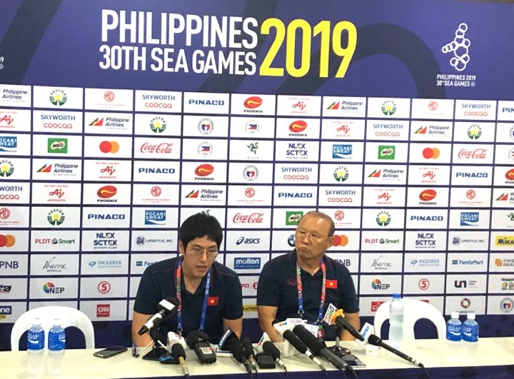 Gương mặt HLV Park Hang-seo giãn ra trong phòng họp báo ở sân Binan: “Tôi hài lòng với trận thắng thứ hai của đội tuyển U-22 Việt Nam ở vòng đấu bảng SEA Games 30 lần này. Cứ mỗi trận đấu đều có 3 điểm là tôi rất vui. Các cầu thủ của tôi đã chơi bóng nỗ lực hết mình và tôi muốn gửi lời cảm ơn đến họ”.