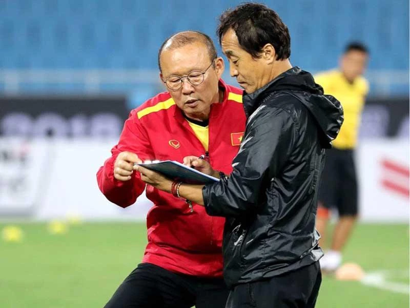 HLV Park Hang-seo và trợ lý đắc lực Lee Young-jil đang lên kế hoạch về việc phân thân cho các đội tuyển Việt Nam. Ảnh: NGỌC DUNG