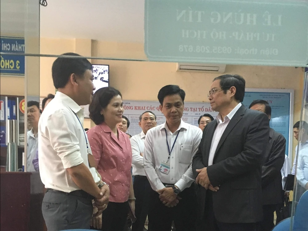 Sáng 22-2, đoàn công tác Ban Tổ chức Trung ương do ông Phạm Minh Chính dẫn đầu cũng đã tới làm việc với Đảng ủy phường Tân Chính, quận Thanh Khê, TP Đà Nẵng. Ảnh: T.AN